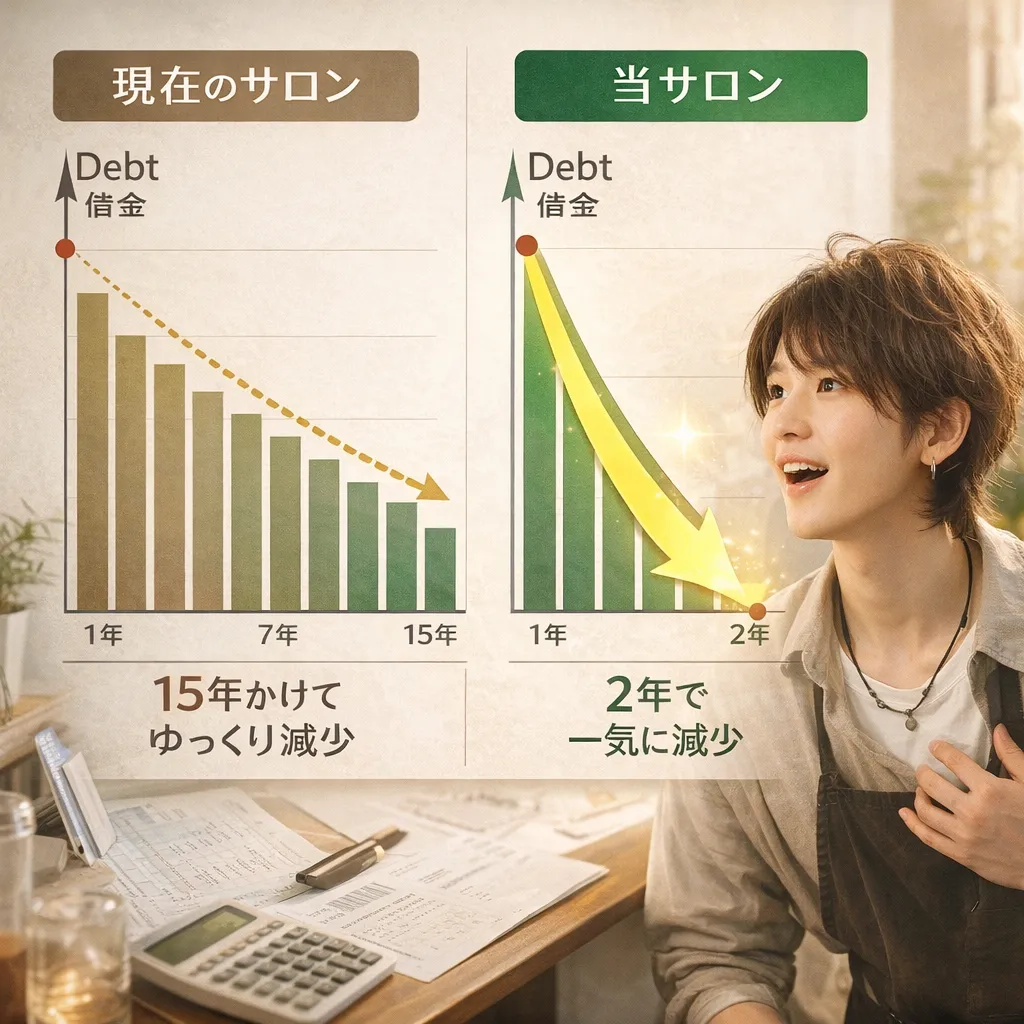 しかし、高還元型サロンへの転職によって、収入自体を大きく増やすことが可能です。例えば、月収50万円を実現できれば、生活水準を変えずに増えた分をすべて返済に回すことで、300万円の奨学金も2年ほどで完済できます。これは「借金に追われる人生」から「自己成長に投資できる人生」への大きな転換点となります。